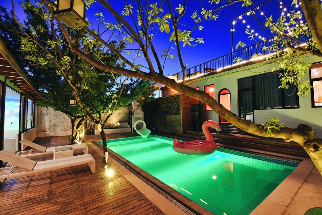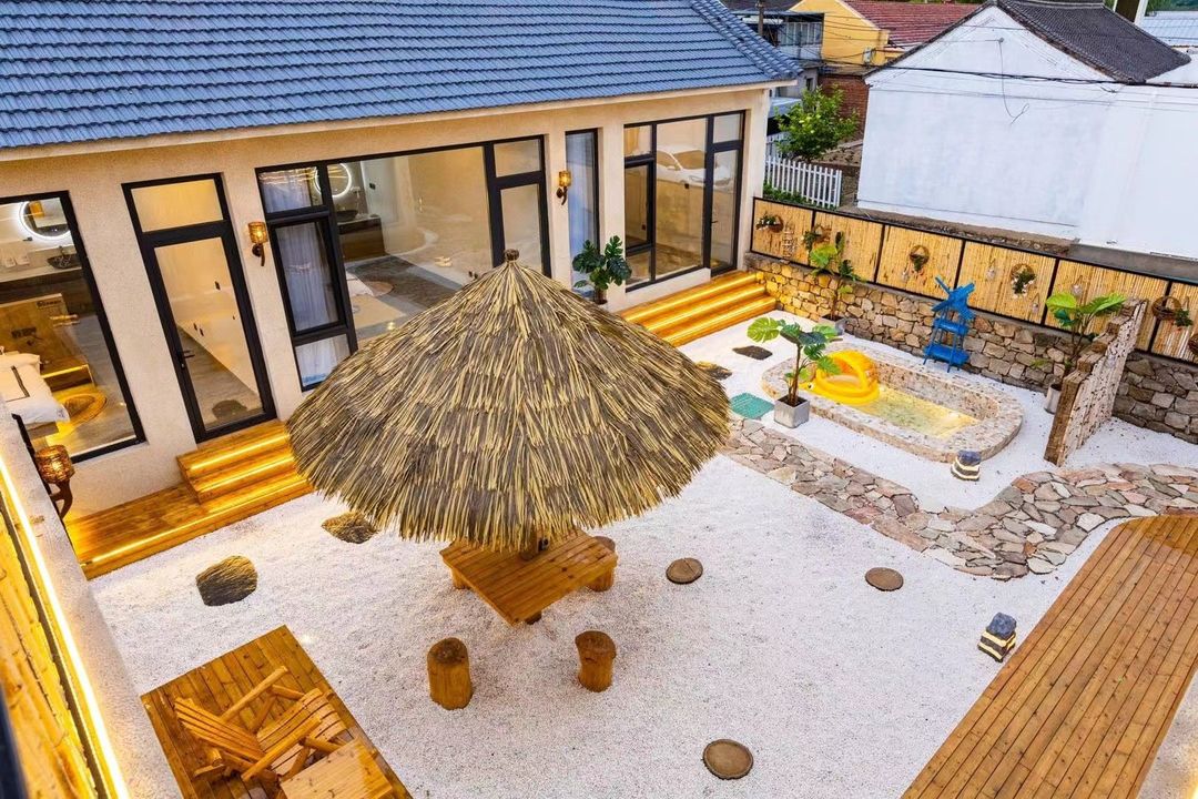 This luxury countryside homestay is a dream getaway! With 950 sqm of space featuring private hot springs, KTV, and a game room, it’s perfect for family reunions or group gatherings. Outdoors, you’ll find a pool and streams for玩水, keeping kids entertained for hours. The spacious family suites (50 sqm!) let you sleep under starry mountain views—pure magic! Nearby attractions like Bai Quan Mountain and You Valley are just minutes away. Enjoy BBQ, fruit picking, and more. Book now for an unforgettable escape with loved ones!