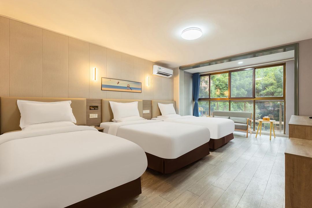 Langya Mountain Tingquan Ju stands just 2 minutes' walk from Rangquan Spring, with direct access to the historical trailhead. Built into the hillside, its rooms boast private balconies facing the tranquil spring and Song Dynasty stone carvings. The hotel offers complimentary audio guides and illustrated maps explaining the legends of "Zuiweng Ting" and "Langya Temple," creating an immersive journey through time. Perfect for travelers who value seamless access to heritage spots.