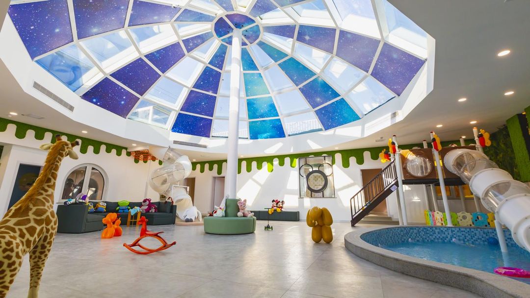 This is truly a magical getaway! With its warm yellow walls and playful arch design, this place radiates charm. The vibrant outdoor pool with exciting slides is fun for both kids and adults. Rock the night away in the KTV room equipped with premium sound systems, or enjoy quality family time in specially designed kid-friendly rooms. Surrounded by nature, you can BBQ, play billiards, or even bring your pets along. Don’t miss the National Day special offers – book now for an unforgettable stay!