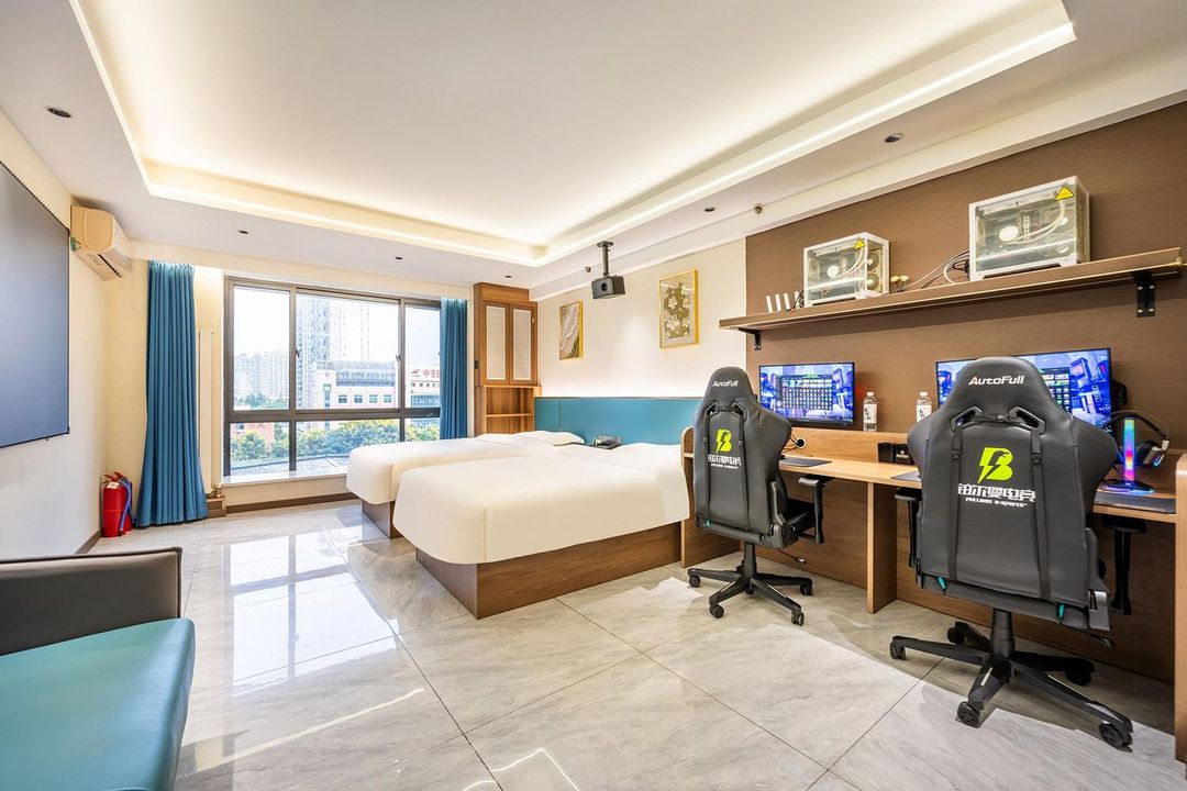 This esports-themed hotel is a paradise for gamers! With RTX3060Ti graphics cards and 165Hz refresh rate screens, plus i7 processors, your gaming sessions will be ultra-smooth. Perfect for squad battles! Just steps away from Ganjiazhai Metro Station, it's super convenient for airport and train station transfers. Rooms are fully equipped, even with thoughtful touches like umbrellas and 24-hour hot water. The cozy bedding ensures a good night's sleep. The 24/7 front desk offers warm service, and the stay 5 nights, get 1 free deal is unbeatable. Whether for a romantic date or a guys' trip, this place rocks!