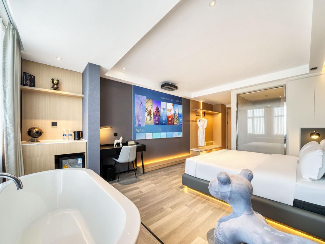 Lomon Galaxy Suite offers unobstructed views of the nightly fireworks display from its floor-to-ceiling panoramic windows. Each suite is equipped with smart lighting that syncs with the show’s rhythm, creating an immersive experience. Guests also enjoy complimentary access to the rooftop viewing deck and a curated firework viewing guide. This premium room is ideal for memorable family moments—reserve via HopeGoo for seasonal discounts.