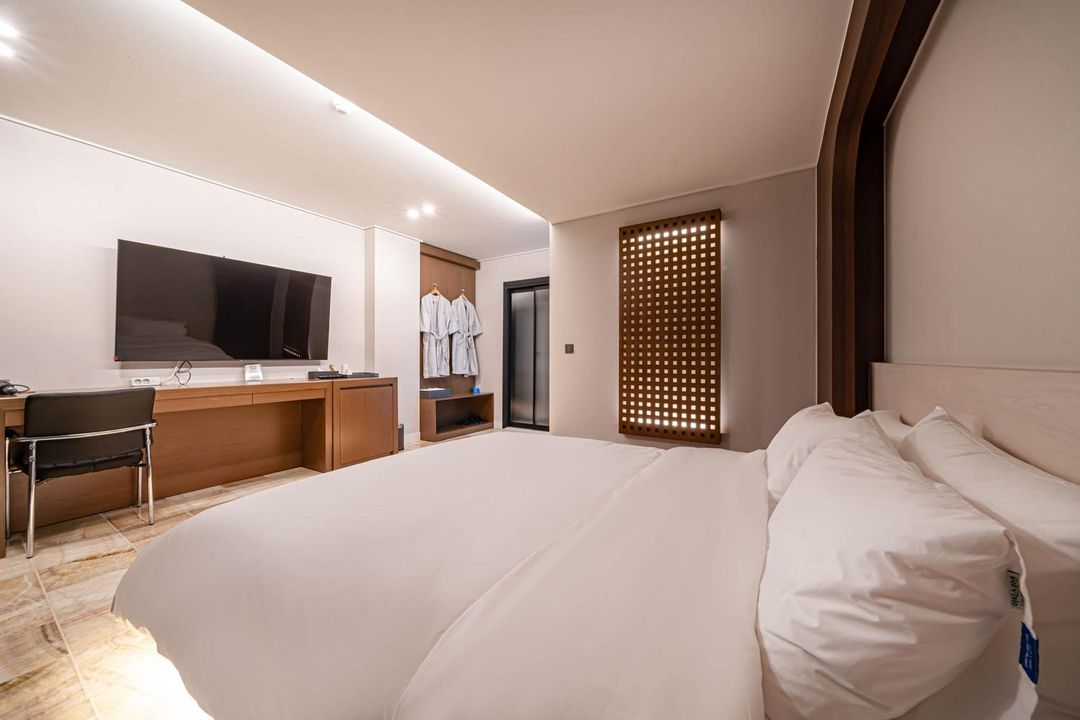 Sacheon Bay Resort Hotel offers premium ocean-view rooms directly facing the scenic coastline of Samcheonpo Bridge Park. Guests enjoy a 5-minute walk to the park’s waterfront promenade and access to private beach areas. For exclusive rates, book through the HopeGoo app