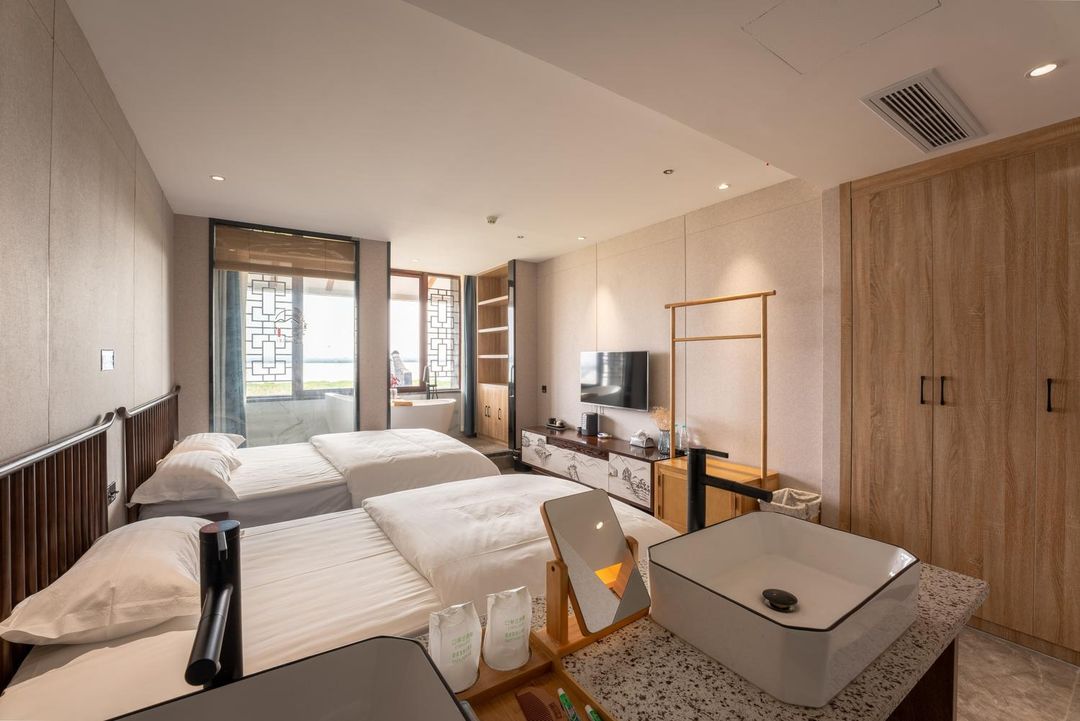 This lakeside retreat nestled in the 5A-rated Shajiabang Scenic Area offers a perfect blend of modern comfort and traditional Chinese aesthetics. The new Chinese-style design creates a poetic ambiance, with serene courtyards and waterside platforms ideal for photos or picnics. Families will love the kids' club and playground, while business travelers can utilize the multi-functional meeting rooms. Unwind at the bar with live music, savor hand-brewed coffee, or enjoy craft beers under the stars. With a well-equipped gym and laundry facilities, every detail ensures a homely stay. Whether for leisure or work, this haven lets you slow down and embrace the "Manxin" philosophy of mindful living.