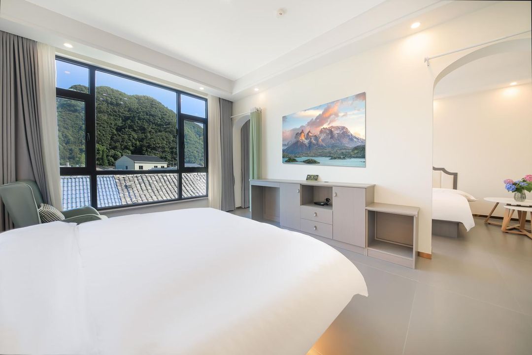 Looking to escape the hustle and bustle of the city? This is the perfect getaway for you! Zero-distance access to the Dragon Scale Dam means you can dive into the water right outside your door, and activities like rafting on the Huyuan River or paragliding are just a stone's throw away. Every room features floor-to-ceiling windows, offering stunning views of the mountains and streams—pure relaxation! Enjoy the tatami area and projection lounge with friends, perfect for chatting, crafting, or movie nights. As evening falls, head to the 60+ square meter rooftop terrace to sip tea under the stars and feel the cool breeze. Private parking and complimentary car washes add the perfect touch of convenience. Come and savor the slow pace of countryside living!