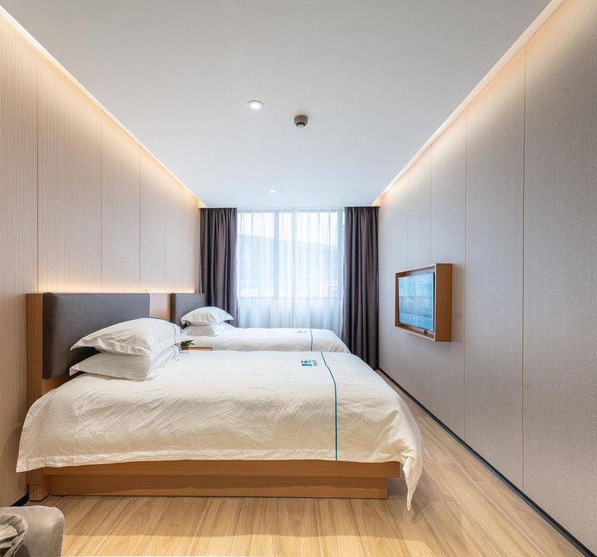 Staying at Shenwan Hotel was a delightful surprise during my trip to Shenzhen. The location is unbeatable—right next to Gangxia Metro Station's D exit, making it super easy to get around Futian and nearby areas. The building even shares the same complex with a food court, and there are major shopping malls like Zhuoyue and Huangting Times Square just steps away, so dining and shopping are never an issue. The hotel feels brand new, spotlessly clean, and everything you’d need is well-maintained with no hygiene concerns—definitely reassuring for a new property. For under $250 per night, the king-size room offers great value, though the bed is slightly smaller than expected. Still, given the price point and overall quality, it’s hard to complain. I really appreciated the separate toilet and shower area, plus the sink placed right outside the door—a smart layout that makes daily routines more convenient. Complimentary toiletries and fast, reliable Wi-Fi were a nice touch. No smoking inside, and the automatic curtains add comfort and privacy. The only minor downside was some sound leakage between rooms, but it quieted down after bedtime, so it didn’t ruin the experience. Overall, this stay exceeded my expectations—great location, clean rooms, excellent value, and thoughtful details. I’d definitely book here again.