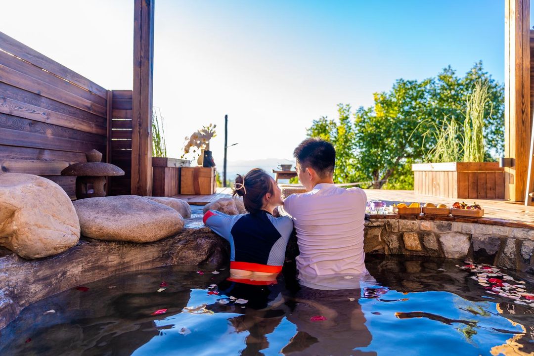 Looking for a family getaway? This eco-friendly retreat ticks all the boxes! Enjoy private hot spring courtyards, infinity pools, and a kids' play area—fun for all ages. BBQ in the garden, sip tea on the terrace, or explore nearby attractions like Gubei Water Town (30min drive) and Happy Squirrel Valley (5min drive). Pet-friendly and equipped with premium bedding plus floor heating, it’s comfort meets adventure. Perfect for creating memories!