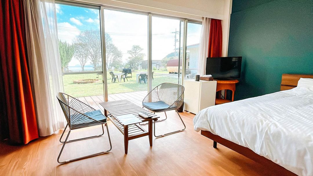 Umi no Hikari Ryokan stands out with its rooftop panoramic terrace rooms, providing uninterrupted sunset views over Shonan Beach. Each room features floor-to-ceiling windows and an outdoor seating area perfect for evening relaxation. Located just 300 meters from the beach, guests can enjoy strolling along the seaside promenade or watching the evening fishing lights sparkle on the water. Book through HopeGoo for exclusive upgrades and early check-in privileges.