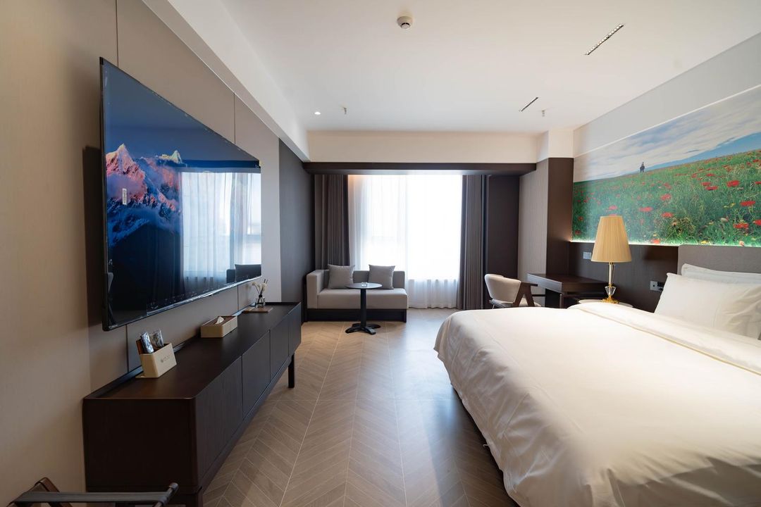 A modern oasis on the Silk Road! 15-minute access to the high-speed rail and 40-minute airport transfer make business trips effortless. Wake up to panoramic views of the Tianshan Mountains through floor-to-ceiling windows, with smart room controls for lighting and temperature. Their high-end bedding, soundproof glass, and sleep aromatherapy turn bedtime into a ritual. Step outside to Wanda Plaza for shopping and dining, or explore the Xinjiang Museum and Yashan Scenic Area. With robot service and 24/7 front desk, this stay blends convenience with luxury.
