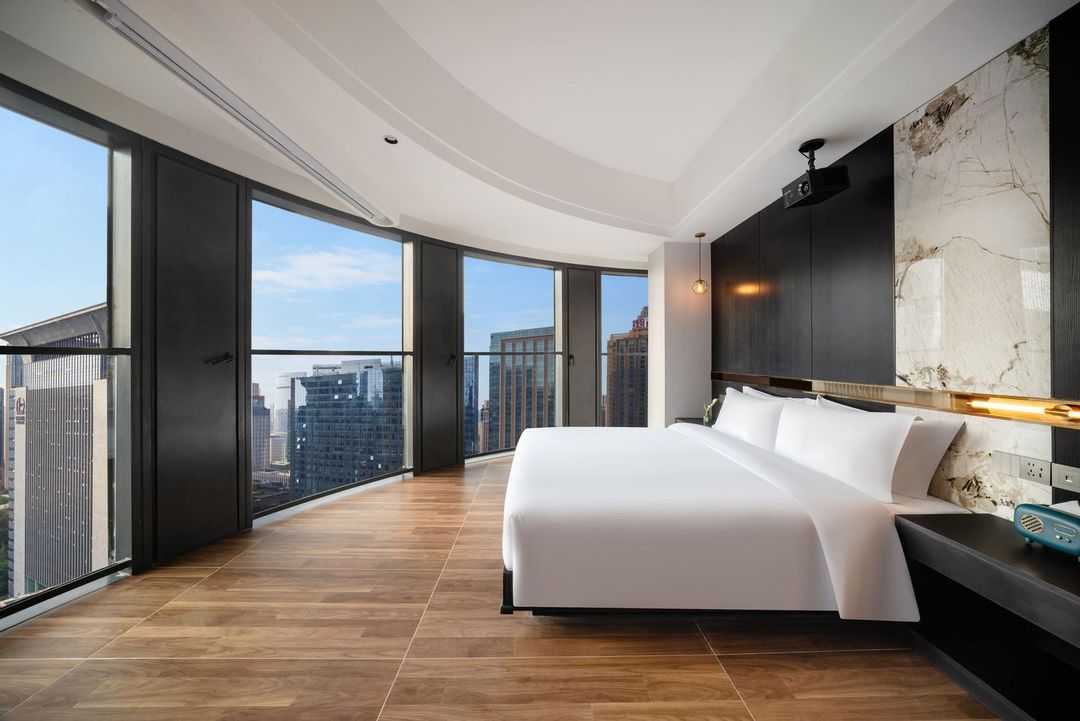 This hotel is a true urban wellness oasis! Nestled in the heart of the high-tech zone, it offers easy access to Dayuan Central Park and Xiaoji River, with trendy spots like Yintai Center just a stroll away. The design is a vibrant mix of rusty orange and deep green, creating a lively yet relaxing atmosphere. Rooms are a health enthusiast’s dream, featuring private fitness areas, adjustable desks, and even 6 types of pillows for the perfect sleep. The 24-hour gym and healing yoga classes keep you energized, while the restaurant serves low-calorie meals and innovative Sichuan dishes that are as healthy as they are delicious. Perfect for both business and family trips!