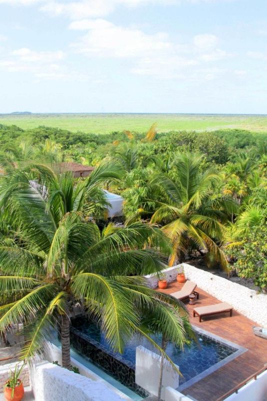 Nearby options include eco-lodges and boutique hotels like Azulik, known for their unique natural design and private beaches, perfect for those seeking tranquility.