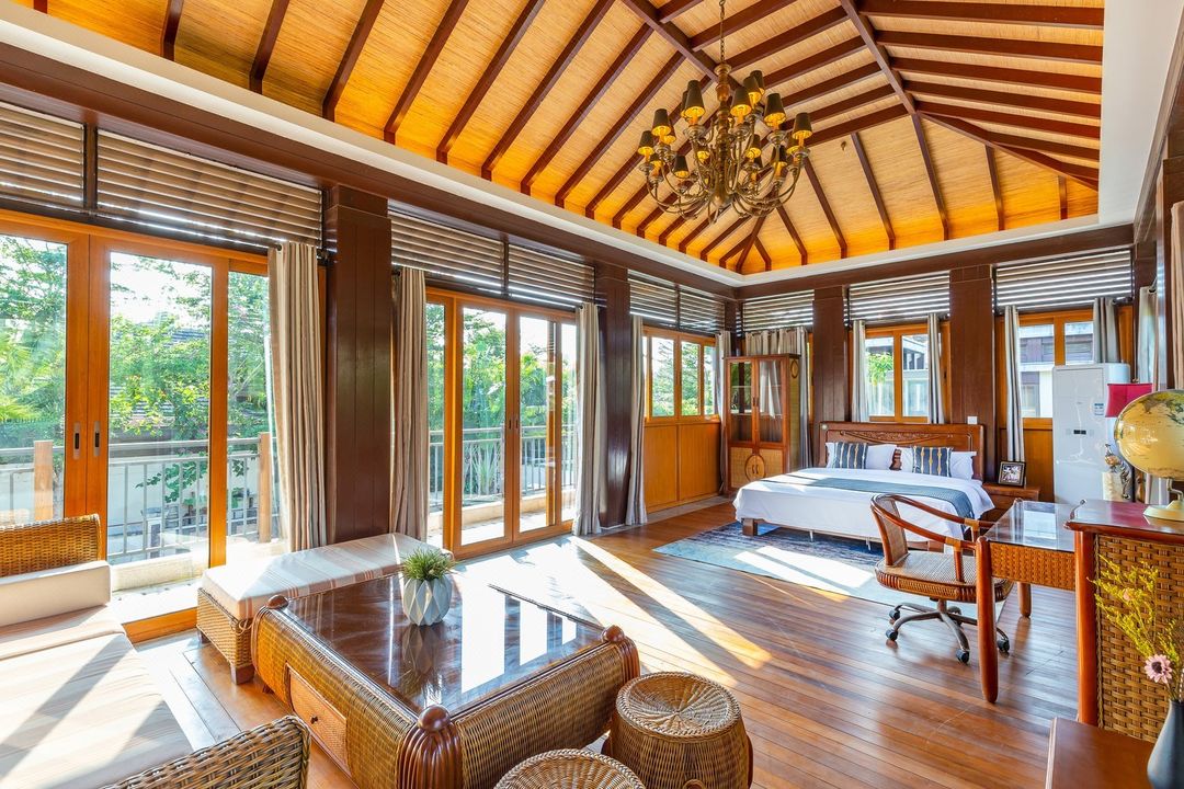 Tucked away in Yalong Bay's Hongshu Valley, this oasis offers 3-8 bedroom private pool villas, perfect for families or group getaways. Enjoy beach volleyball, snorkeling, kayaking, and more with their water sports equipment! The Southeast Asian-inspired architecture creates a tropical vibe, and it's even pet-friendly—bring your furry friend along! With 24-hour front desk, shuttle services, and amenities like BBQ areas and kids' playground, every detail is designed for a hassle-free vacation. Plus, the private beach access makes it truly special!
