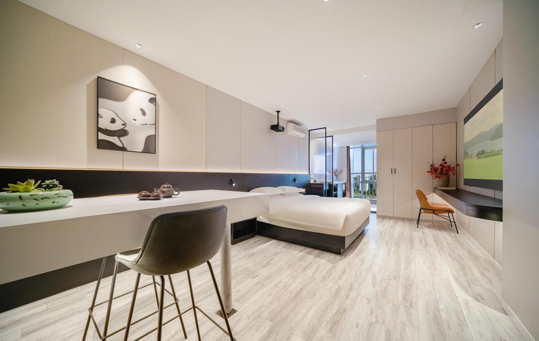 This family-friendly urban oasis wows with 270° floor-to-ceiling windows overlooking Tianfu Art Park! Unwind in the Zen tea room, catch movies on a 100-inch screen with Harman Kardon speakers, while kids play in the dedicated playground. Sleep soundly on Eclipse luxury mattresses – just minutes from Happy Valley amusement park and Sam’s Club. Pet-friendly with stellar service, metro access, and free parking, it’s a perfect blend of comfort and convenience near cultural landmarks.