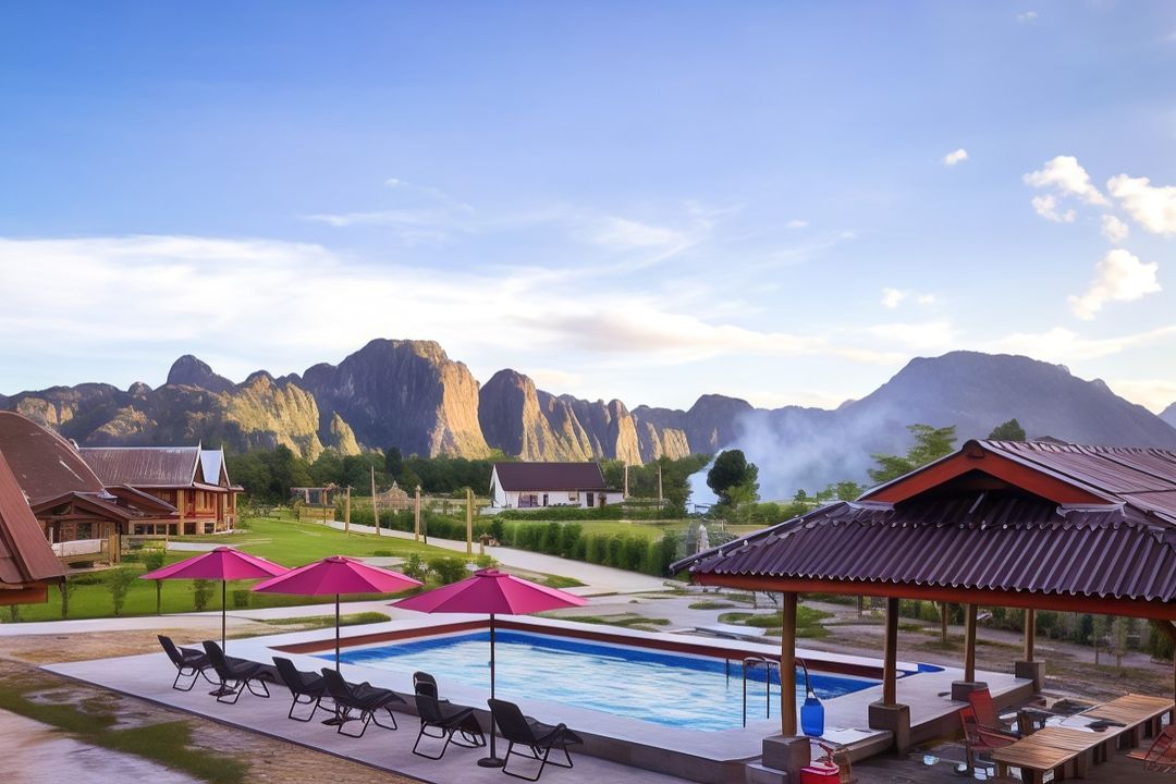 Vientiane Mist Valley Resort features elevated rooms directly facing the entrance of Tham Khaen Cave, offering a breathtaking view as sunlight spills through the cave’s natural skylight each morning. The resort provides complimentary sunrise photography packages, including tripod rentals and expert guidance for capturing the golden glow on limestone formations, making it ideal for nature photographers.