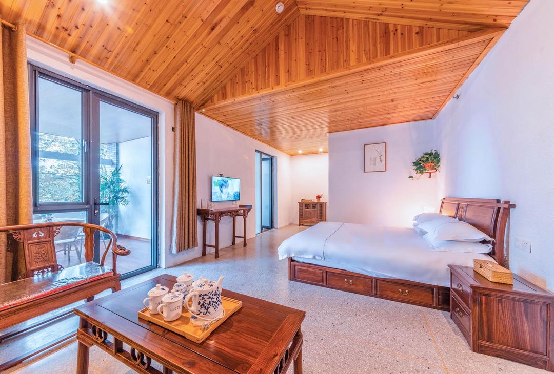 Huzhou Taihu Yun She Villa is nestled beside Laohu Tan Reservoir, offering spacious family rooms with outdoor kids' play zones and guided ecological tours. Just a 10-minute walk leads to the reservoir trail, perfect for morning mist views and golden hour reflections. Book in advance to enjoy private balconies and authentic local farm dinners through HopeGoo