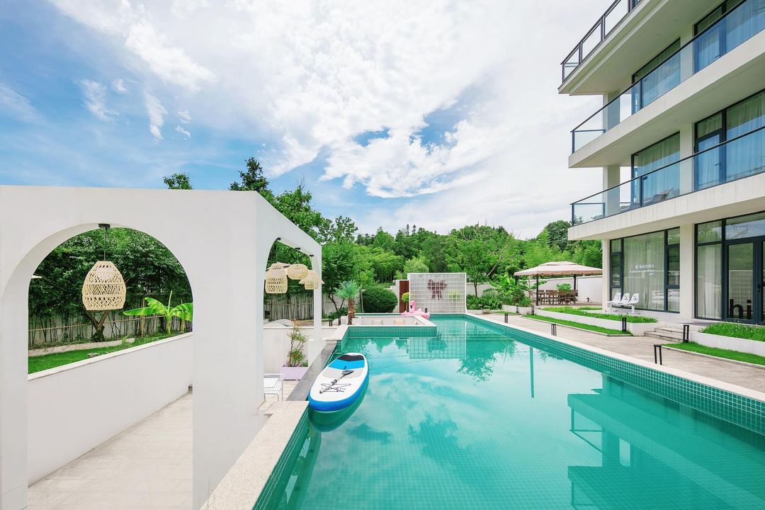 Huzhou Taihu Yun She Villa is nestled beside Laohu Tan Reservoir, offering spacious family rooms with outdoor kids' play zones and guided ecological tours. Just a 10-minute walk leads to the reservoir trail, perfect for morning mist views and golden hour reflections. Book in advance to enjoy private balconies and authentic local farm dinners through HopeGoo