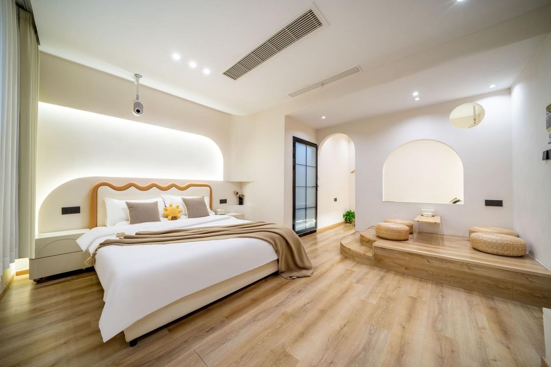 This is a perfect blend of design aesthetics and local culture! Located in the heart of Xi'an, just a short walk from the Bell and Drum Towers and Muslim Quarter, with a metro station nearby. Every room features a 1080P HD projector, ideal for couples, families, or friends traveling together. You can even rent an e-bike to explore the surrounding attractions! At night, unwind with a specialty cocktail at the garden bar or relax in the 300㎡ private garden with the adorable "furry staff"—cats and dogs. Wake up to the view of the Bell Tower and fall asleep to the aroma of street food. This isn’t just a stay; it’s an immersive journey through time!