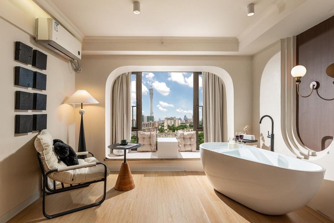 This hotel is a true urban oasis! Nestled in Haixinsha Asian Games Park, it’s just a short walk to Huacheng Square and the Pearl River New Town CBD, with easy access to the iconic Canton Tower via Haixin Bridge. The design blends Lingnan water town culture with Haixinsha’s unique charm, offering themed rooms inspired by "City Garden" and "Haixinsha Melody." Enjoy the infinity pool, fitness center, two stylish bars, and a cozy neighborhood restaurant. At night, soak in the stunning views of the Pearl River and the ever-changing lights of Canton Tower. Perfect for romantic getaways, family trips, or business meetings!