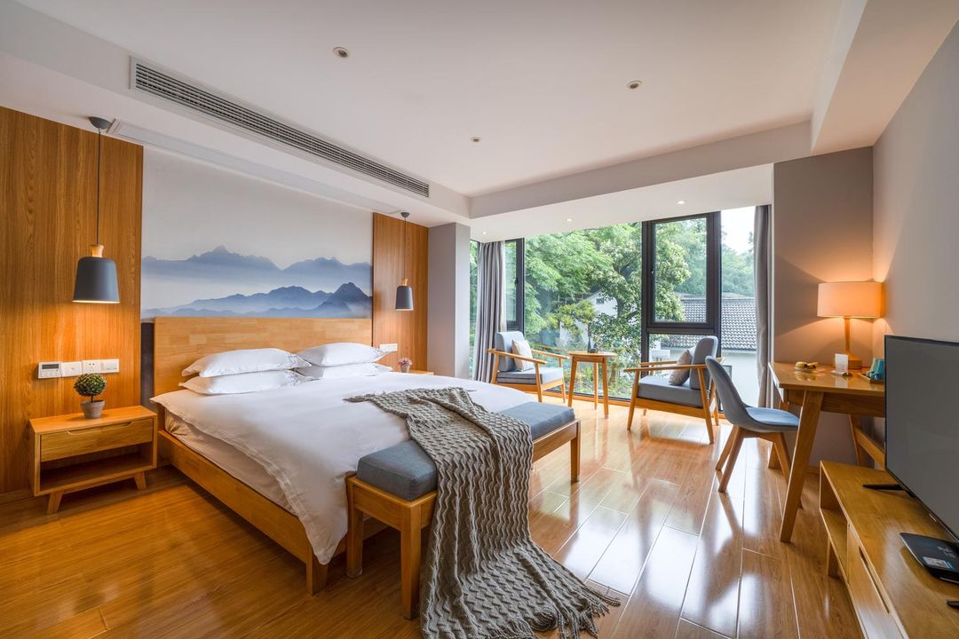 Tucked away near Lingyin Temple, this white-walled and black-tiled inn is a serene escape in the city. With its private courtyard and small bridge over flowing water, accompanied by the soothing sounds of guqin music, it instantly washes away worldly worries. Enjoy Wuyi Mountain rock tea and vegetarian health meals, or try tea-picking in their private garden. The uniquely designed rooms feature underfloor heating and Kohler bathrooms, plus warm hospitality. Perfect for a summer retreat or peaceful getaway!