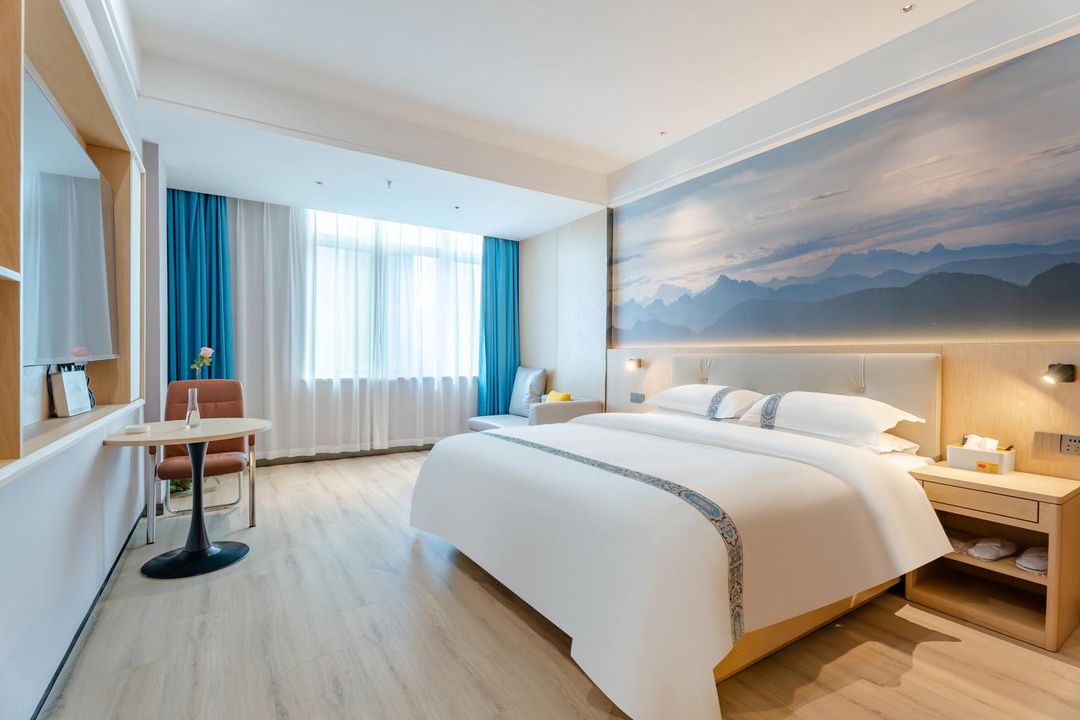 Qiyun Chanshe is ideal for spiritual seekers, located just 300 meters from Wuhu Baishui Temple. It offers a daily free morning ritual tour at 5:30 AM, allowing guests to participate in monk-led chanting sessions. The rooms feature Qing Dynasty-style décor with bamboo screens and soft lighting, creating an authentic meditative atmosphere. A private rooftop meditation terrace overlooks the temple’s pagoda and distant hills. Limited to 20 guests per season—reservations are strongly advised through HopeGoo.