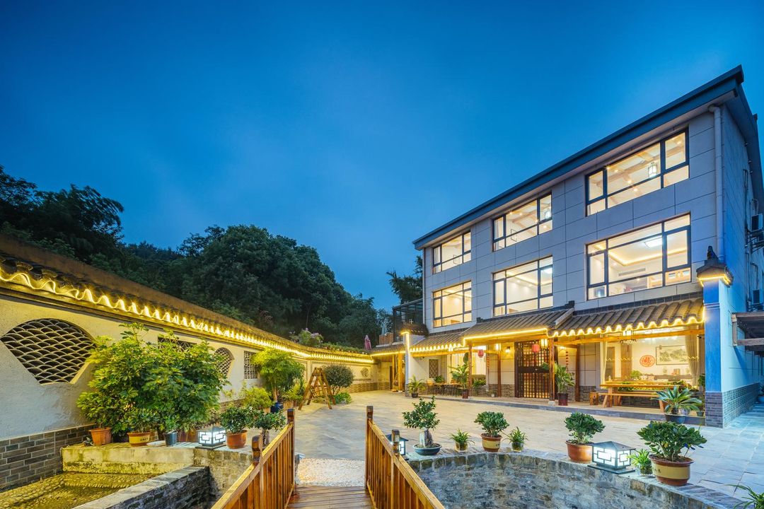 Cuihu Yaju Hotel features Starlight Rooftop Rooms with panoramic glass walls offering unobstructed views of Wuming Bridge's nightly light show. Every evening at 8 PM, the bridge and surrounding buildings sync with a poetic projection display, transforming the scene into a living ink-painting landscape. The room’s smart dimming system adjusts lighting to match the ambiance. For guaranteed access to the prime viewing floors, book through the HopeGoo app.