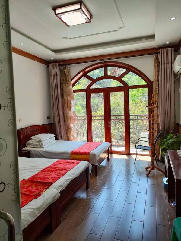 Tucked away in the mountains, this eco-friendly retreat offers a unique U-shaped design with rooms divided into four themes—each boasting thoughtful details like tea lounges by floor-to-ceiling windows. Kids will love the convertible window beds, while adults unwind with mountain views. Outside, five-tiered leisure decks feature a pool, BBQ zones, and private viewing platforms—perfect for families or groups. The multi-functional hall doubles as a KTV, conference room, or dining space, ensuring non-stop fun. A true hidden gem for nature lovers and adventure seekers alike!