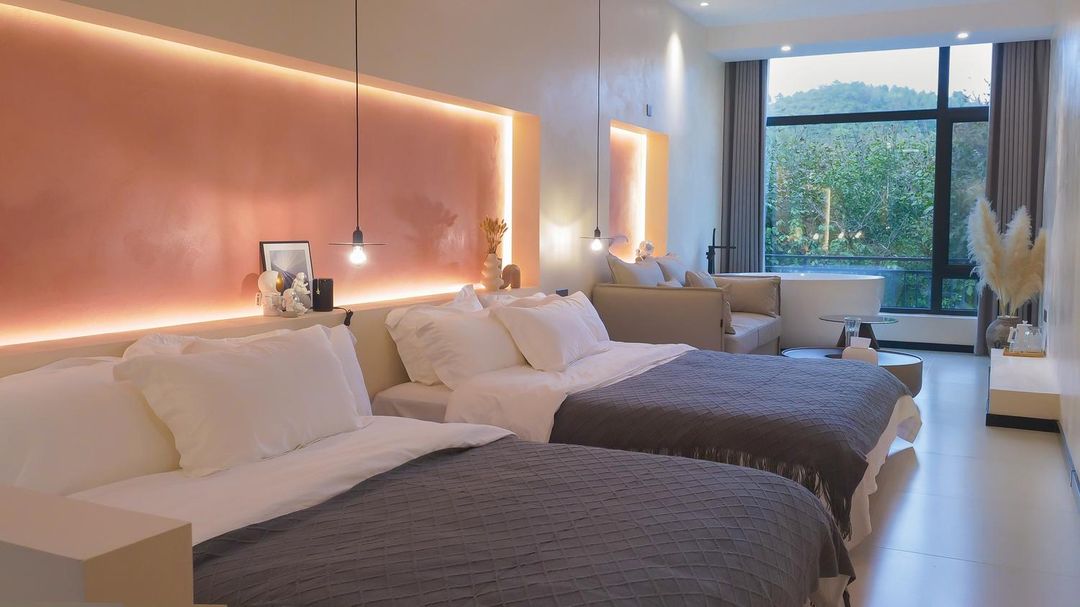 This is the perfect spot for family and friends gatherings! With a kids' playground, water park, and animal encounters, the little ones will have endless fun. Adults can unwind in the hot spring, hit the gym, or enjoy a game of billiards or ping pong. At night, gather around for a barbecue or sing your heart out at the KTV. It's a budget-friendly stay with luxurious amenities, offering superb value. Plus, the airport pickup service makes travel a breeze!