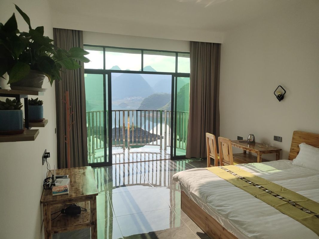 Yanzixi Cloudtop Villa is ideal for sunrise viewing, perched on a hilltop with panoramic vistas of karst peaks bathed in morning light. Each room features a private balcony and complimentary tea service at dawn. The nearby Sunrise Trail offers easy access to prime photo spots, blending serenity with breathtaking natural beauty. Book through HopeGoo for exclusive view-room packages.