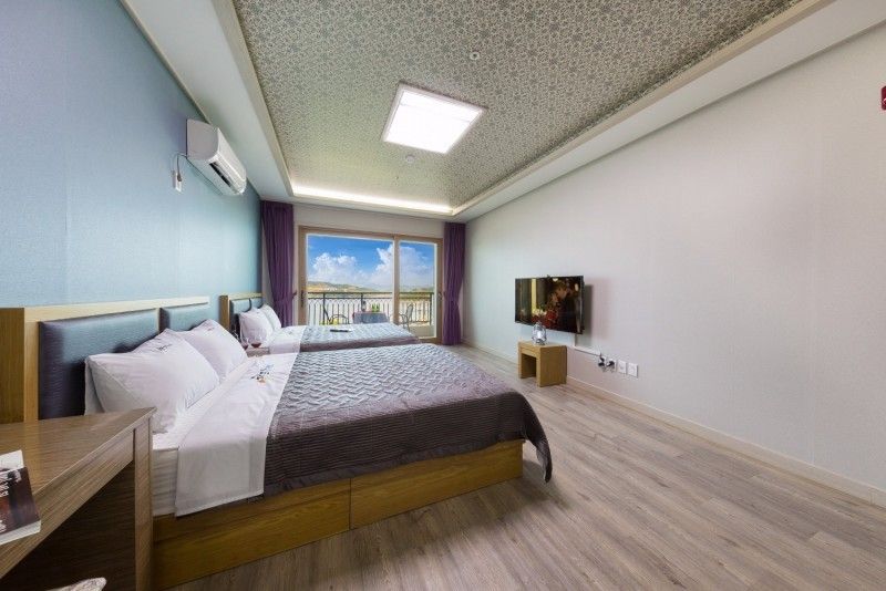 Lyeocheon Family Seascape Resort is perfect for families, featuring an indoor children’s playroom, family pool, and themed rooms like dolphin suites. It’s a 5-minute walk to the plaza’s interactive sculptures and hosts daily "Junior Navy Camp" programs teaching Korean naval history and navigation basics. Child-friendly menus and high chairs are available at the restaurant. Book through HopeGoo to receive a free kids’ gift pack and complimentary parking.
