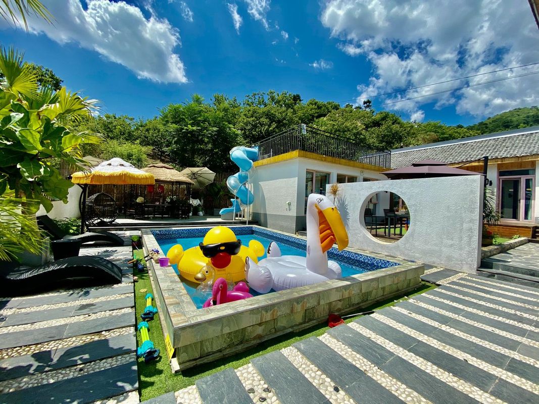 This is a dreamy getaway paradise! The 1300 sqm courtyard gives you plenty of space to relax, and the heated pool and hot tub are perfect even in winter. Love fun activities? Enjoy KTV, mahjong, billiards, ice hockey, and even table football and shooting with friends. Bringing kids? The trampoline and children's playground will keep them entertained for hours! The highlight? Try your hand at vegetable planting or play by the river, and don’t miss the chance to interact with adorable pet rabbits. Whether it’s a family reunion, friends’ party, or a romantic retreat, this place has it all!