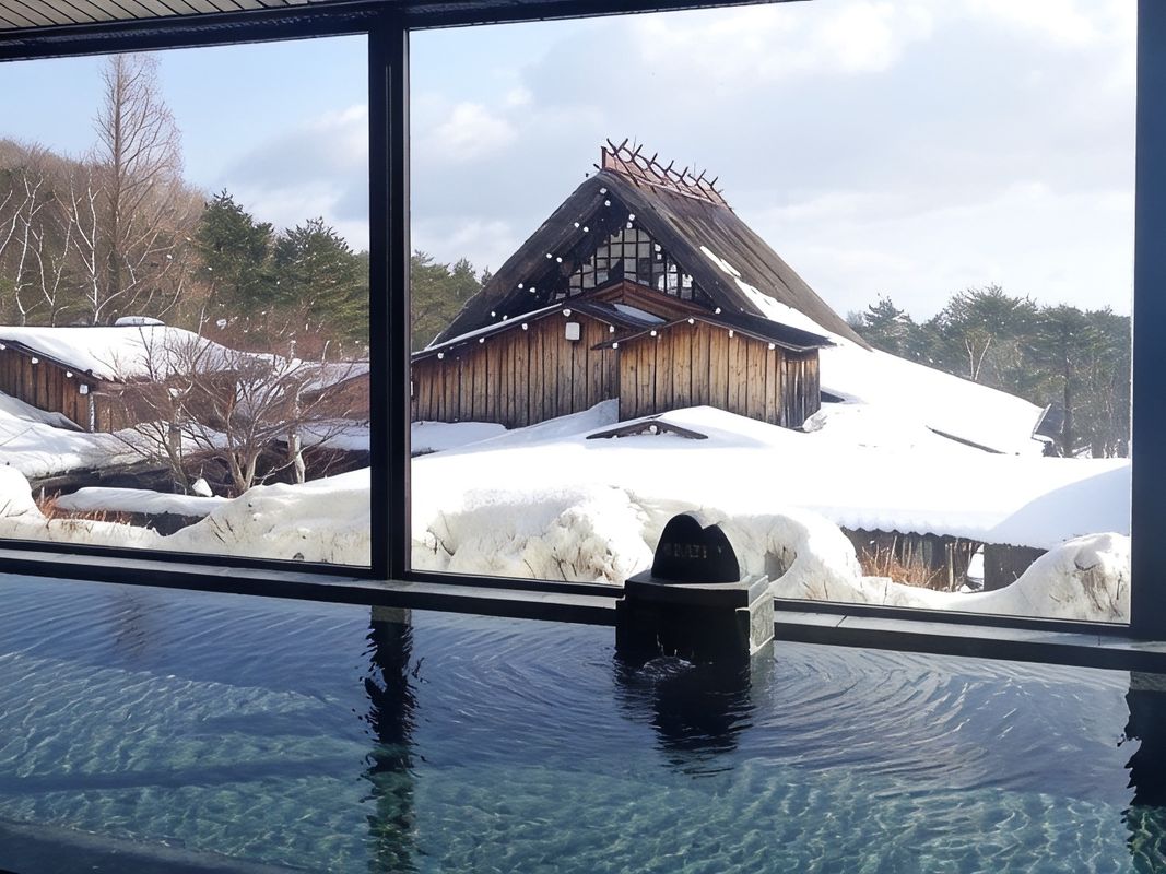 The Snow View Room at Yukiwari Onsen Ryokan offers breathtaking vistas of Yukiwari Bridge and surrounding snow-capped peaks through floor-to-ceiling windows. Each room features underfloor heating and a private Japanese garden veranda, ideal for morning tea or evening stargazing. Some rooms include a complimentary personal guide to help plan photo spots and optimal viewing times. Book on HopeGoo for a free room upgrade.