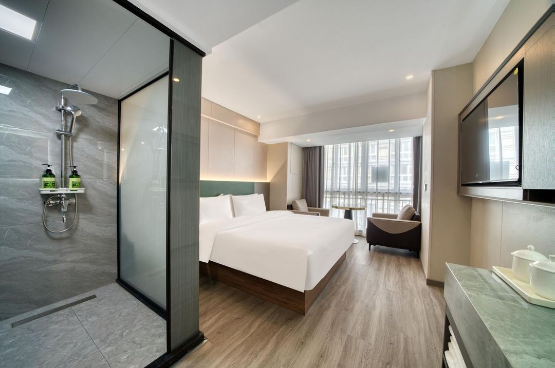 This hotel is the perfect blend of business and leisure! Located in a bustling shopping district with easy metro access and free parking, it offers ultimate convenience. The grand lobby features a 9-meter ceiling adorned with Tang Dynasty murals, exuding luxury. Rooms combine Chinese classical and minimalist European styles, each over 35㎡ for a spacious, cozy stay. Enjoy 12 premium mahjong rooms, KTV, and even free forest oxygen eggs in select rooms for ultimate relaxation. With delicious breakfast, attentive service, and a warm front desk team, it’s ideal for both work and play!