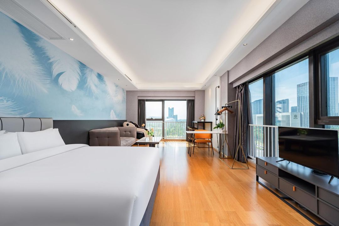 This apartment is a metro-top gem with direct access to Gaosha Road Station, whisking you to the airport, train station, or West Lake in no time. Flanked by InCity Mall and Wujiao Tianjie shopping hubs, it’s perfect for food and fun. Rooms are equipped with washer & microwave, offering true home-away-from-home comfort. Stroll to nearby university campuses or Jinsha Lake Park for serene vibes. With 24/7 front desk and pro service, it’s ideal for both business trips and getaways!