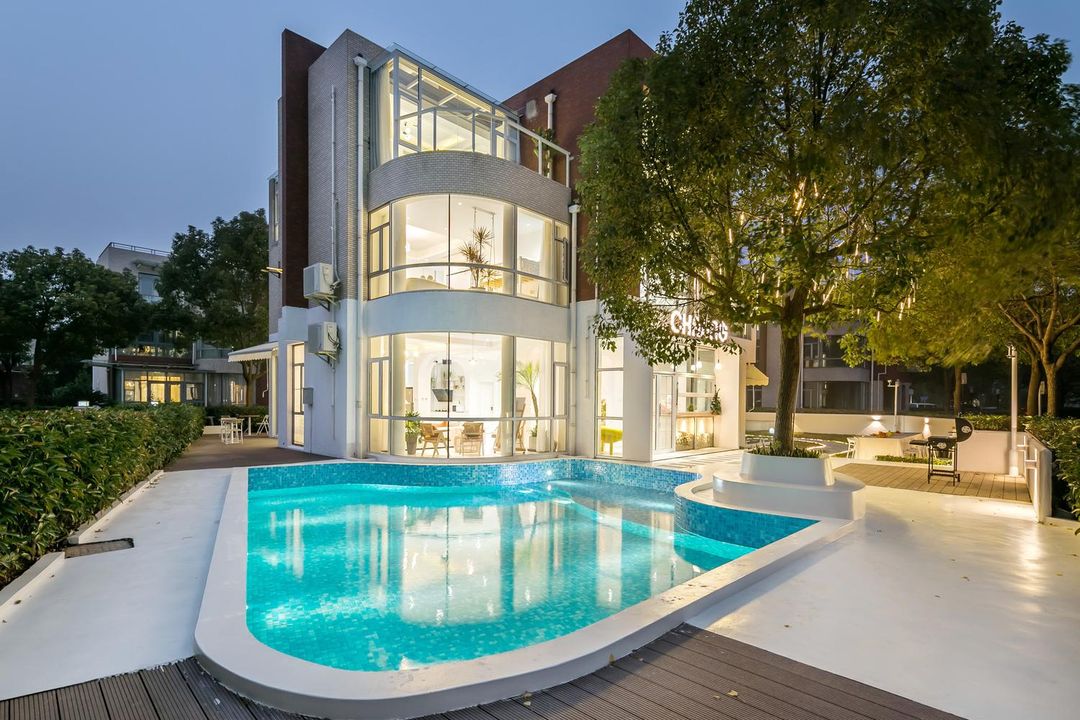 Tucked away near Disney, this hidden gem offers the perfect blend of nature and luxury. Surrounded by century-old camphor trees and bamboo forests, the villa boasts stunning river views. Kids will love the transparent slide and treehouse swings, while adults can unwind by the Moroccan-style pool. Each Nordic-inspired room is uniquely designed, with multi-functional spaces and large terraces ideal for family gatherings, weddings, or corporate events. Don’t miss the Jiuyan Bridge night views—pure magic!