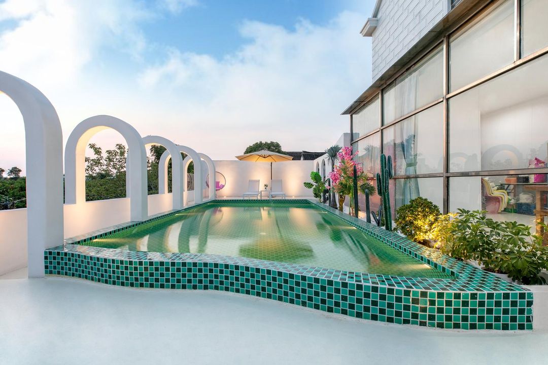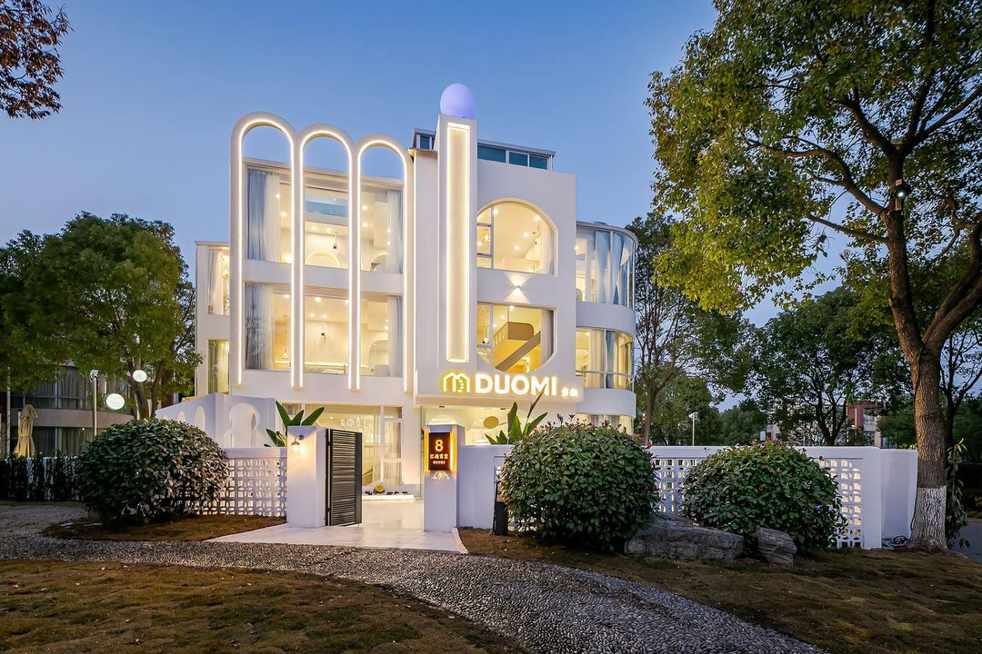 Tucked away near Disney, this hidden gem offers the perfect blend of nature and luxury. Surrounded by century-old camphor trees and bamboo forests, the villa boasts stunning river views. Kids will love the transparent slide and treehouse swings, while adults can unwind by the Moroccan-style pool. Each Nordic-inspired room is uniquely designed, with multi-functional spaces and large terraces ideal for family gatherings, weddings, or corporate events. Don’t miss the Jiuyan Bridge night views—pure magic!