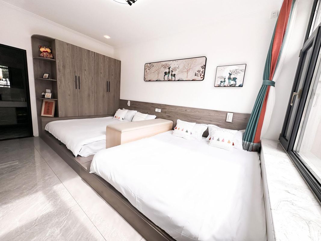 Looking for a peaceful getaway? This Nordic INS-style homestay is nestled in the mountains of Huairou, surrounded by breathtakingnatural scenery. The minimalist yet stylish rooms are perfect for families or groups, with a play area for kids and a barbecue zone. What's more, the water here is sourced from Yunmeng Mountain spring, rich in minerals for a healthier stay. At night, enjoy the Jiuyan Bridge night view or unwind in the home theater. Don't miss the chance to relax in this pet-friendly retreat!