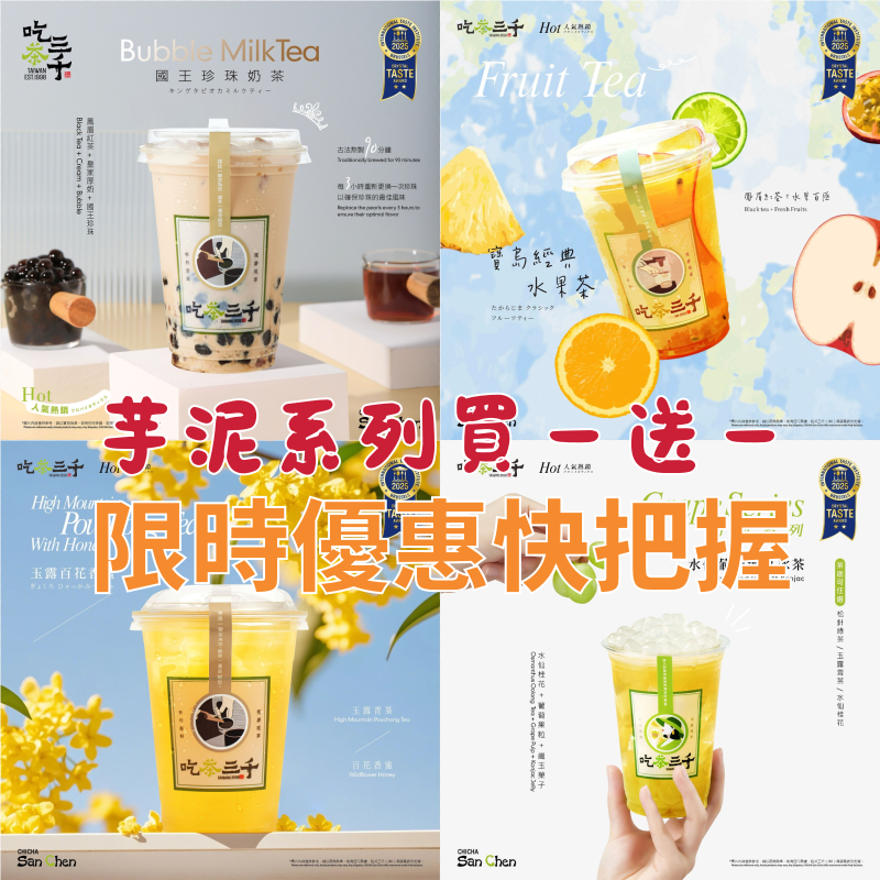 吃茶三千限時優惠!芋泥系列買一送一+冰箱貼等你攞!