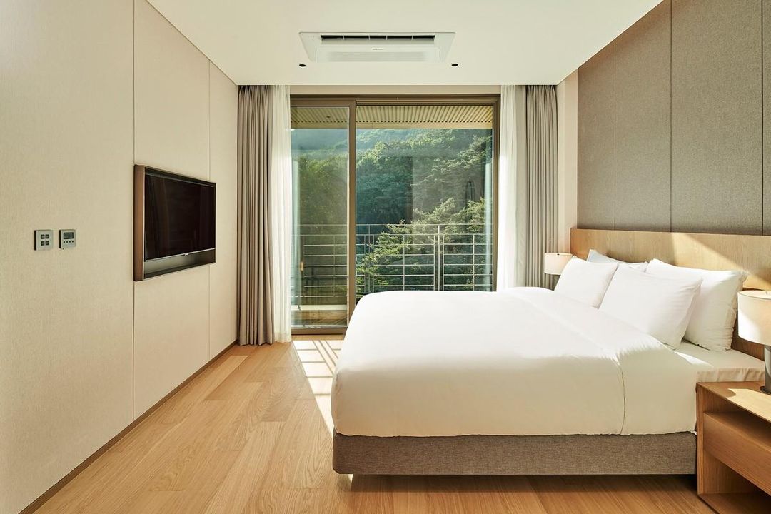 推薦入住鷹峰山莊民宿 (Eungbong Mountain Villa),這是一間融合韓屋建築與現代設計的特色民宿,位於鷹峰山腳下,俯瞰龍潭湖美景。房內保留原木結構與傳統地暖系統(온돌),提供沉浸式韓國鄉村生活體驗。主人會安排導覽活動,如茶道體驗、農耕體驗與手作紙張製作,讓旅客深入感受忠清北道的文化與自然之美。