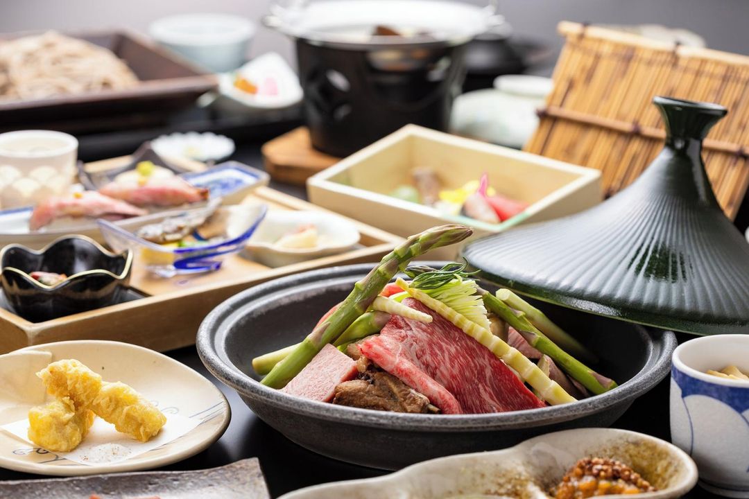 白川村的飲食文化以山區特色為主,推薦品嚐「蕎麥麵」和「飛驒牛」。蕎麥麵口感細膩,常搭配當地特有的醬料。飛驒牛則是日本頂級和牛之一,肉質鮮嫩多汁。此外,還有各種山菜料理,如「山菜天婦羅」,充滿自然風味。