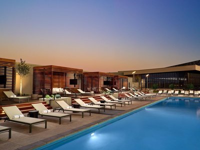 洛杉磯機場萬豪酒店(LAX Marriott)設有戶外泳池及家庭套房(約250美元/晚),提供免費機場接駁車。另推薦Hyatt Regency Los Angeles Airport,兒童入住免費,距離Santa Monica海灘僅15分鐘車程,部分房型含廚房設施。