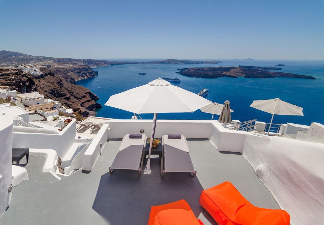 Nefeli Villa 是3 Domes Viewpoint旁的絕佳拍攝地點,其懸崖式設計的玻璃屋套房可將整個火山口與湛藍海水收入鏡頭。酒店提供專業攝影師服務,協助旅客拍攝日落時分的夢幻大片,並設有專屬攝影角,搭配希臘風格佈景與光影裝置。入住期間還可參加太陽落山主題晚宴,在浪漫氛圍中完成一張張令人難忘的紀念照。建議使用HopeGoo平台預訂,可獲贈免費攝影套餐。