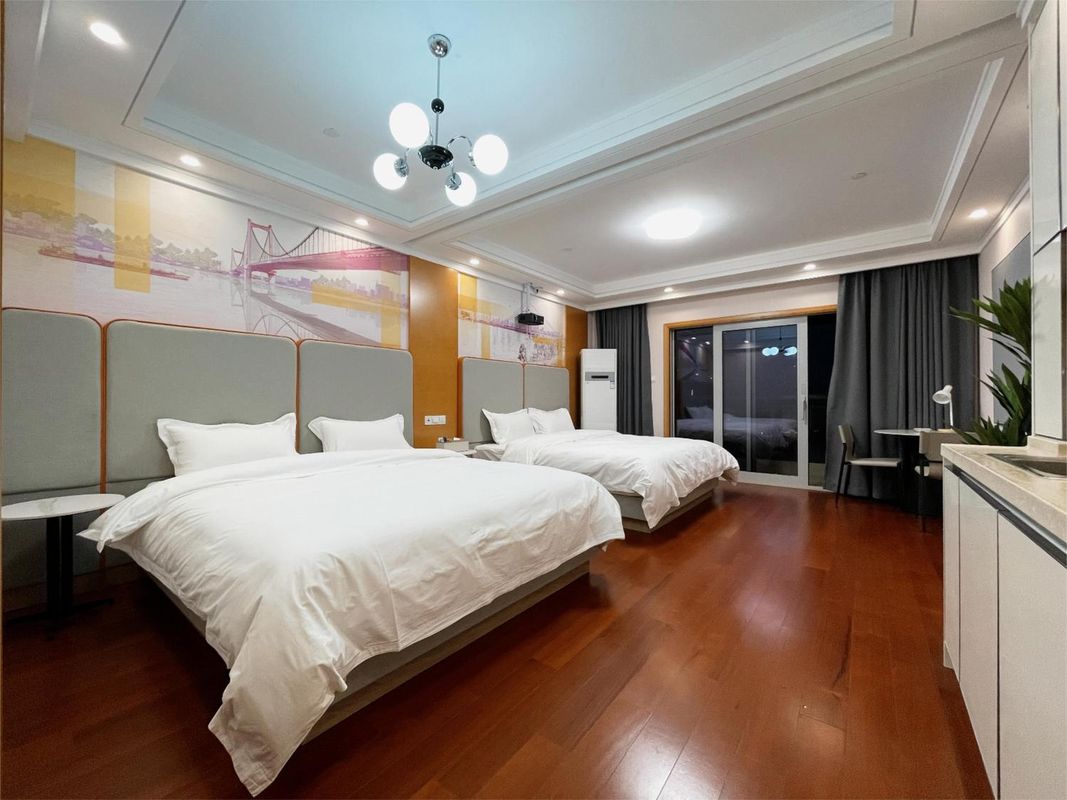 坐落於武漢CBD核心地帶,這間酒店完美融合便利性與舒適感,5分鐘步行即達地鐵站,輕鬆穿梭城市。房間寬敞明亮,配備100吋大屏投影及零壓牀墊,讓您享受影院級體驗與優質睡眠。周邊龍湖江宸天街、雪松路美食街等商圈環繞,盡享購物美食樂趣。更提供24小時管家服務、寵物友好政策及免費停車,無論商務或親子出行都貼心到位!