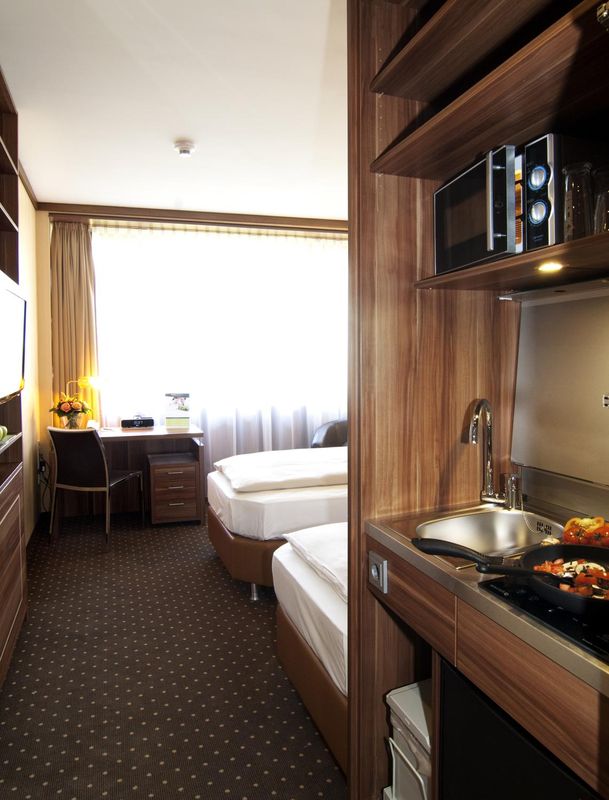 Hotel zur Goldenen Krone 是唯一可從客房俯瞰舊聖馬丁教堂鐘樓夜景的住宿選擇。其頂層套房配備落地窗,夜晚時可欣賞教堂燈光點綴的天際線。酒店還設有私人庭院咖啡廳,提供限量版杜塞爾多夫主題雞尾酒,營造濃厚在地情調