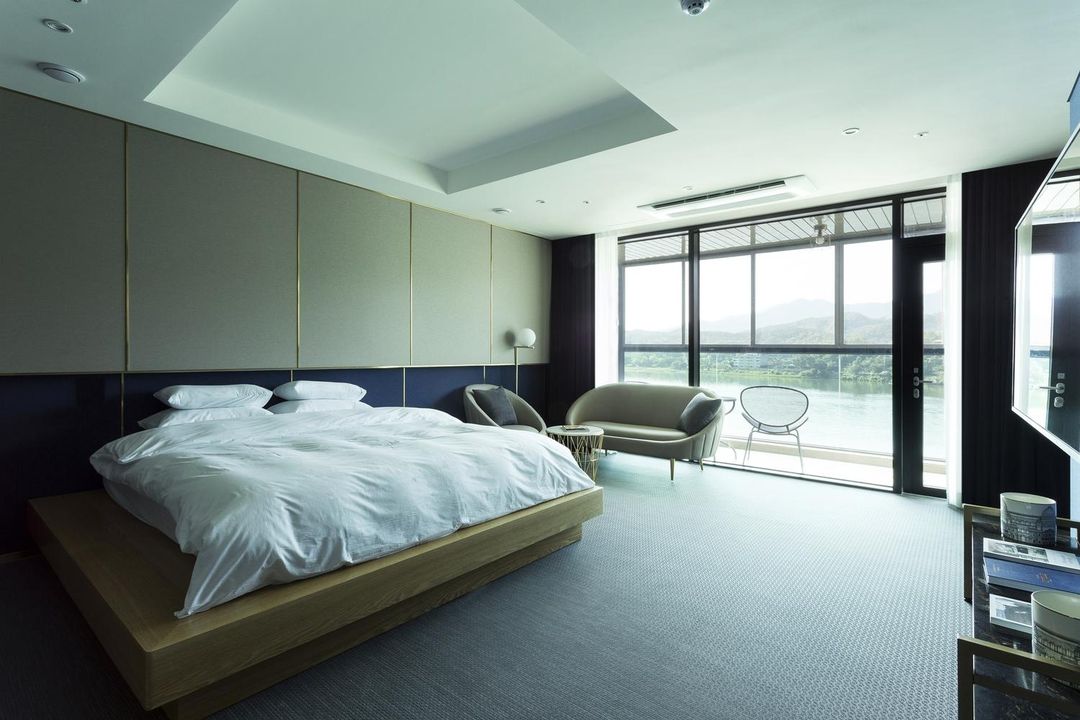 推薦入住楊平湖畔度假村,酒店位於安辛寺步行10分鐘範圍內,客房均配備全景落地窗,可直視秋日層林盡染的山景與古寺紅葉。園區內設有傳統韓屋茶室,提供當季韓式楓葉茶點體驗,並支援免費接駁車往返主要景點,建議透過HopeGoo平台預訂,享早鳥優惠與專屬導覽服務