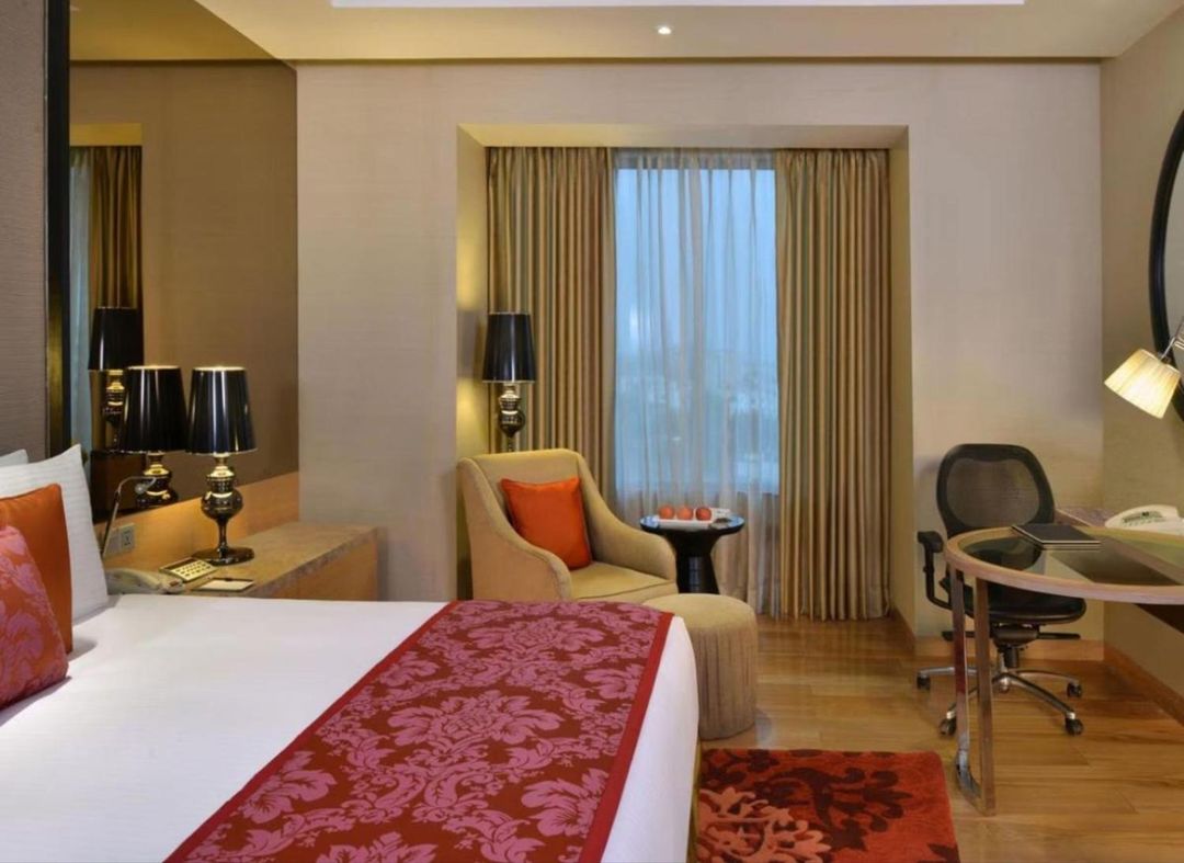 推薦入住凱悅酒店德里新德里,這間五星級酒店坐擁禮堂正對面的優越位置,部分高樓層房間可直視禮堂外牆的現代主義浮雕設計與廣闊庭院。房內配備隔音玻璃窗與智能調光系統,確保會議期間不受外界干擾。從客房出發步行至禮堂僅需5分鐘,極適合作為政要或學術代表的下榻之選