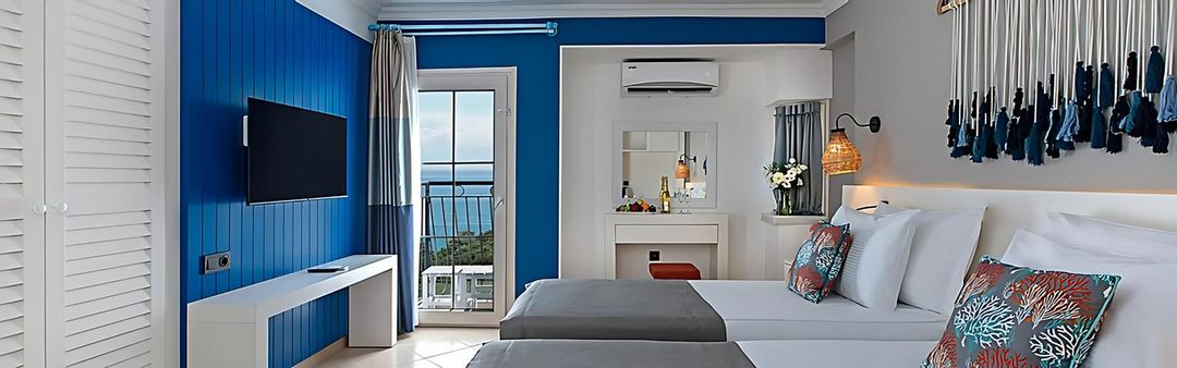 此外,周邊還有藍色夢幻別墅,以傳統土耳其磚石結構搭配白牆藍門,營造出濃厚的地中海風情,適合家庭或情侶短住。所有酒店皆步行5分鐘內抵達城堡入口,交通極為便利,是體驗博德鲁姆文化與自然美景的理想選擇。