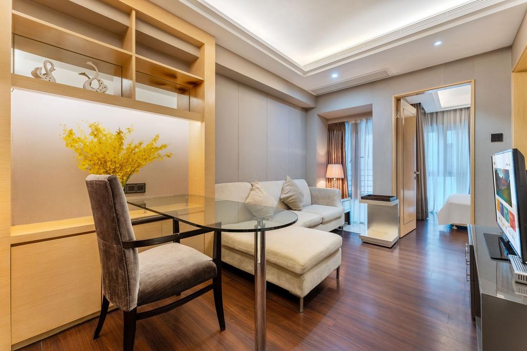 呢度係福田市中心嘅避風港,一出門就係地鐵站,5分鐘直達會展中心同華強北,交通超方便!公寓設施一應俱全,有洗衣機、廚房,仲有家庭影院同健身中心,無論係商務定家庭旅行都啱曬。夜晚可以欣賞動人夜景,日頭周邊多個商圈任你探索。員工服務親切,仲提供接機送站服務,真係貼心到爆!性價比極高,係你深圳之旅嘅理想之選!