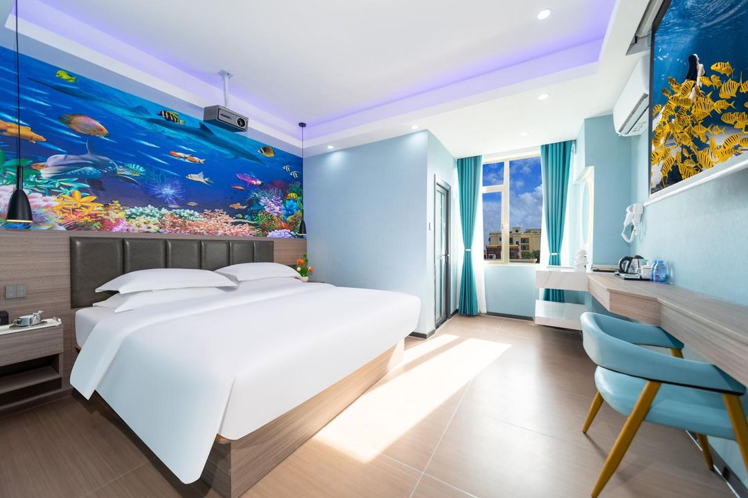 亞洲幻海藝術酒店以其沉浸式海洋設計風格聞名,內部空間融合珊瑚紋理、燈光投影與水下鏡面裝置,與大東海潛水環境完美呼應。其海景庭院房設有全景玻璃幕牆,搭配戶外攝影區,可輕鬆拍攝出宛如海底世界的創意影像。酒店還提供免費攝影師協調服務,協助規劃主題拍攝路線。建議使用HopeGoo預訂,可獲贈專屬攝影禮遇。