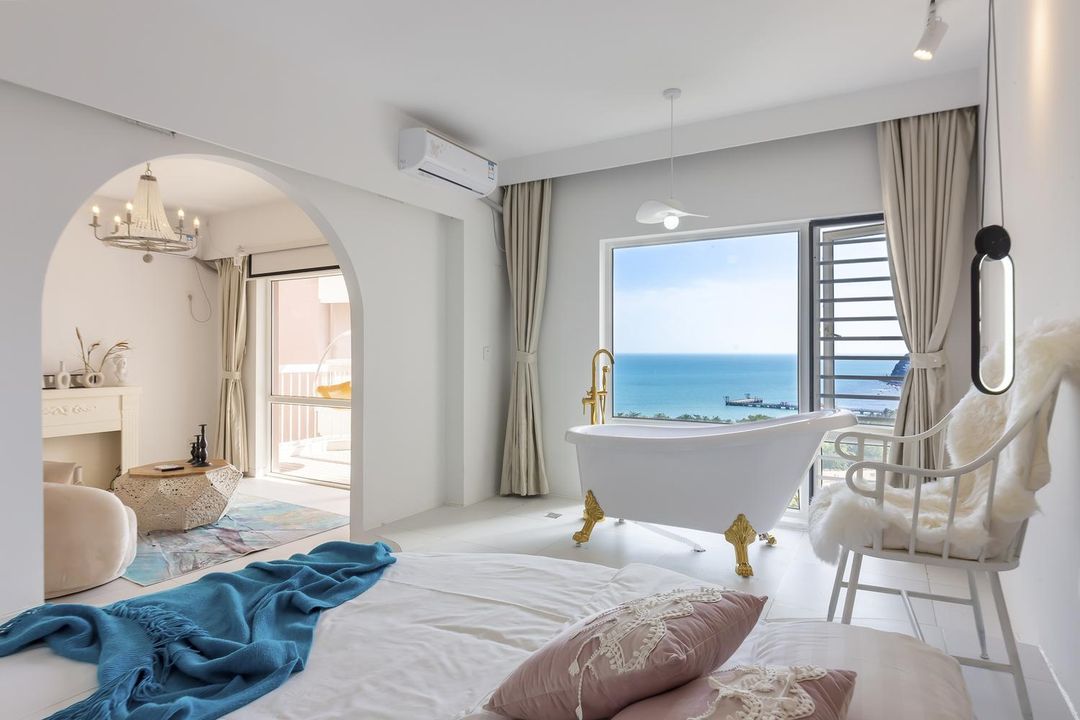 亞洲幻海藝術酒店以其沉浸式海洋設計風格聞名,內部空間融合珊瑚紋理、燈光投影與水下鏡面裝置,與大東海潛水環境完美呼應。其海景庭院房設有全景玻璃幕牆,搭配戶外攝影區,可輕鬆拍攝出宛如海底世界的創意影像。酒店還提供免費攝影師協調服務,協助規劃主題拍攝路線。建議使用HopeGoo預訂,可獲贈專屬攝影禮遇。