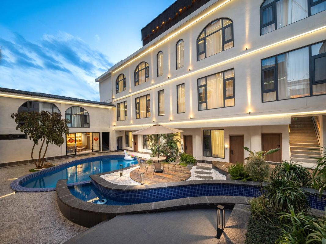 呢度係一個設計感爆棚嘅民宿,融合咗輕奢風格同泳池元素,超大落地窗讓你盡情享受陽光。位於古城附近,交通超便利,去機場同火車站都係20-30分鐘車程。最正係免提行李煩惱,車可以直接到門口!附近有地道小吃街同網紅餐廳,食嘢超方便。民宿仲有無邊泳池、茶室同兒童遊樂區,啱曬一家大細。24小時恆溫衛浴同星級牀品,讓你住得舒適又放心。