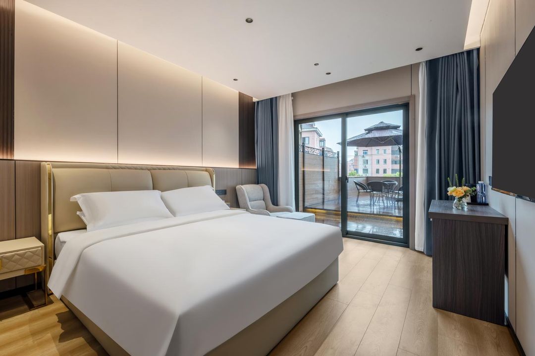 呢間酒店真係性價比超高!位於森蘭商務區,地鐵站就喺旁邊,去邊都超方便。酒店設計融合東方禪意,原木色傢俬同簡約線條,營造出寧靜舒適嘅空間。仲有智能語音系統,聲控燈光同窗簾,科技感十足!設施方面,健身中心、茶室同洗衣房一應俱全,仲有兒童用品同兒童餐,帶小朋友都唔使擔心。最正係有免費停車場,自駕遊嘅朋友可以放心。住過嘅客人都話服務貼心,評分高達4.9,絕對係商務同旅行嘅理想之選!